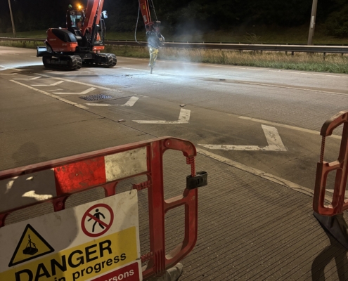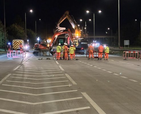 To minimise disruption, traffic management included full overnight carriageway closures on weekends and lane closures during the day, ensuring safety for road users and workers.